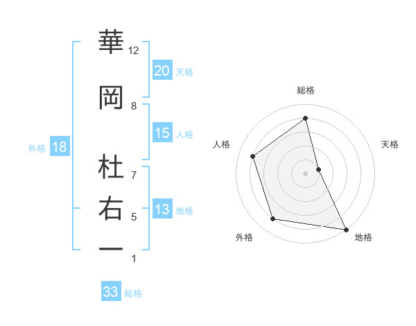 華岡 杜右一さんを姓名の画数から五運を鑑定
