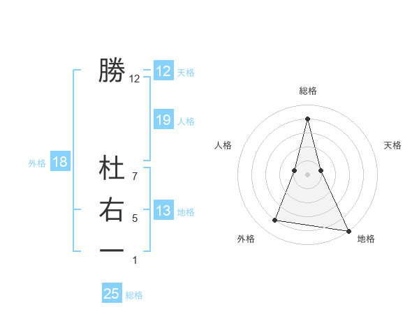 勝 杜右一さんを姓名の画数から五運を鑑定
