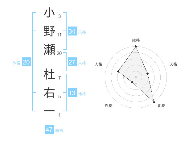 小野瀬 杜右一さんの総格は47画の5点!