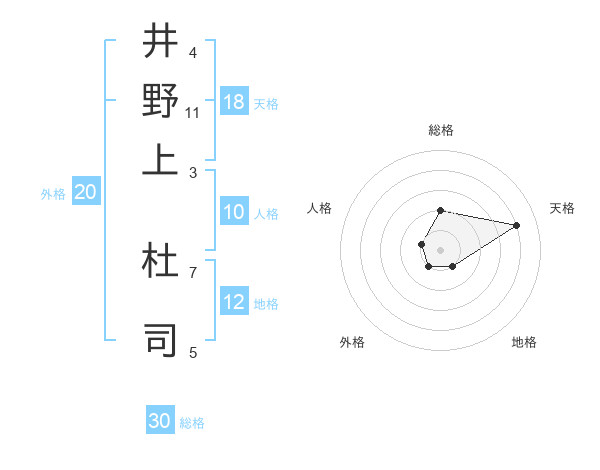 井野上 杜司さんを姓名の画数から五運を鑑定