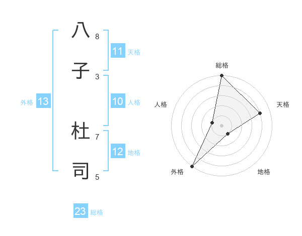 八子 杜司さんの総格は23画の5点!