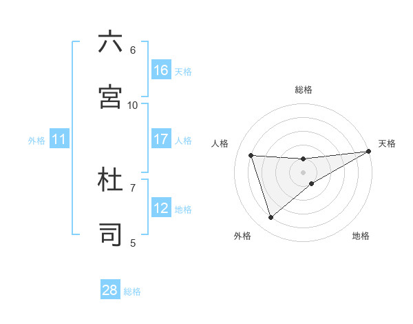 六宮 杜司さんの天格は16画の5点!