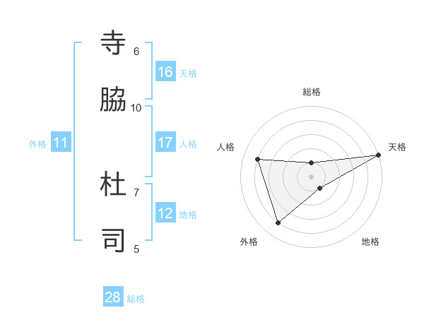 寺脇 杜司さんを姓名の画数から五運を鑑定