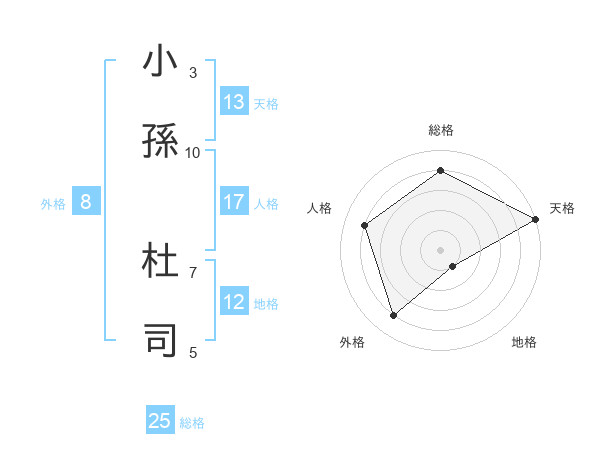 小孫 杜司さんの天格は13画の5点!