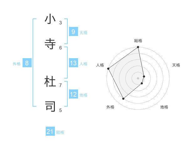 小寺 杜司さんの総格は21画の5点