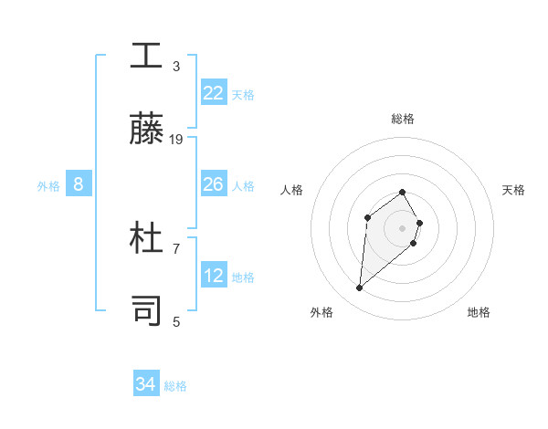 工藤 杜司さんの総格は34画の2点!