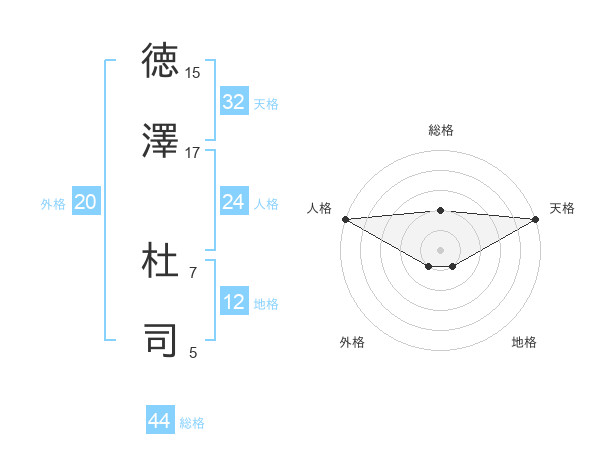 徳澤 杜司さんの天格は32画の5点!