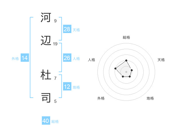 河辺 杜司さんを姓名の画数から五運を鑑定