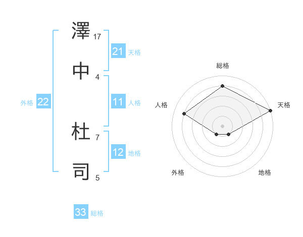 澤中 杜司さんを姓名の画数から五運を鑑定