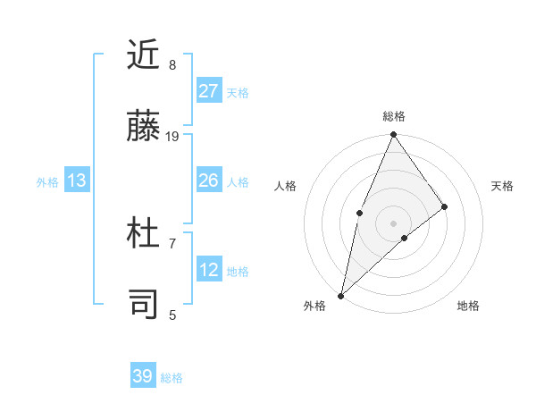 近藤 杜司さんの総格は39画の5点