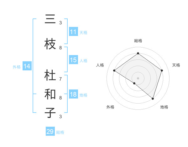 三枝 杜和子さんを姓名の画数から五運を鑑定