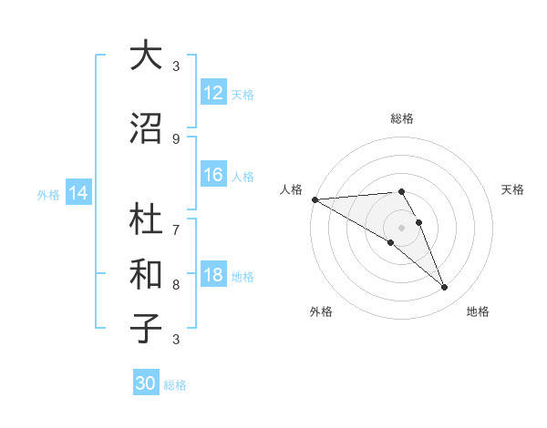 大沼 杜和子さんを姓名の画数から五運を鑑定