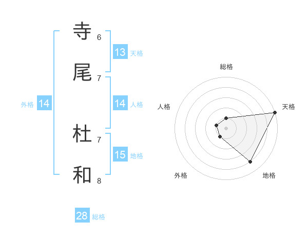 寺尾 杜和さんの天格は13画の5点!