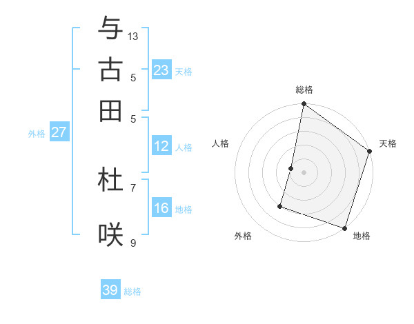 与古田 杜咲さんを姓名の画数から五運を鑑定