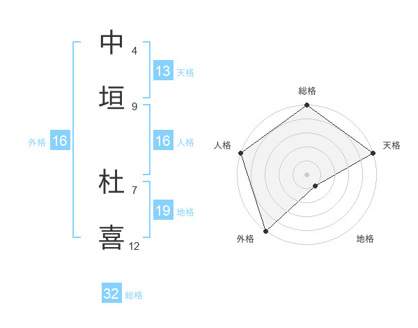 中垣 杜喜さんを姓名の画数から五運を鑑定