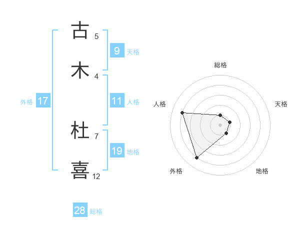 古木 杜喜さんの総格は28画の1点!
