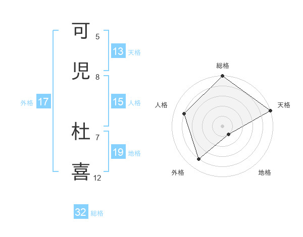 可児 杜喜さんを姓名の画数から五運を鑑定