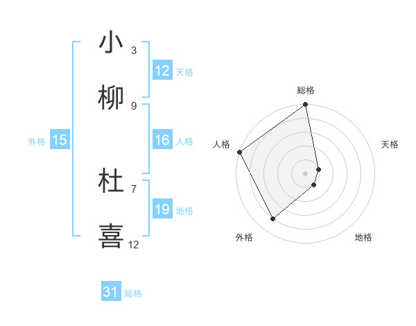 小柳 杜喜さんを姓名の画数から五運を鑑定