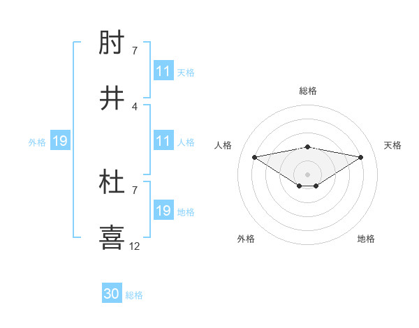 肘井 杜喜さんを姓名の画数から五運を鑑定