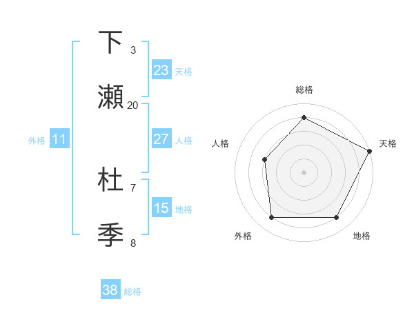 下瀬 杜季さんを姓名の画数から五運を鑑定