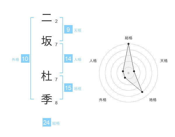 二坂 杜季さんを姓名の画数から五運を鑑定