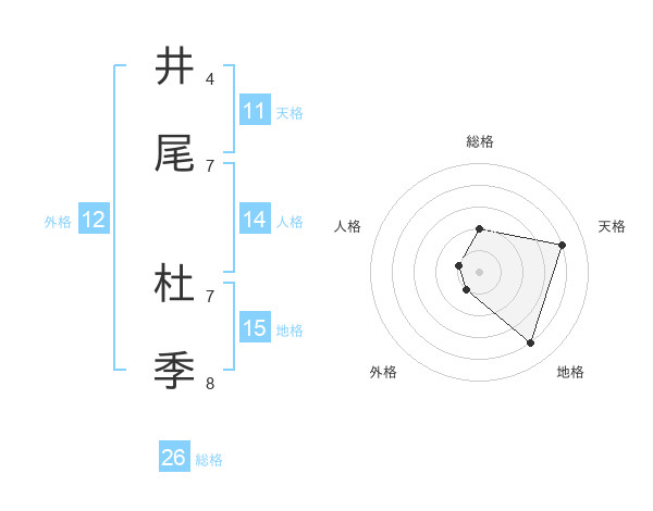 井尾 杜季さんの天格は11画の4点!