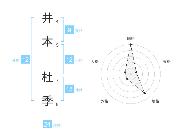 井本 杜季さんの総格は24画の5点!