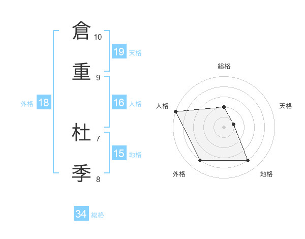 倉重 杜季さんの天格は19画の1点!