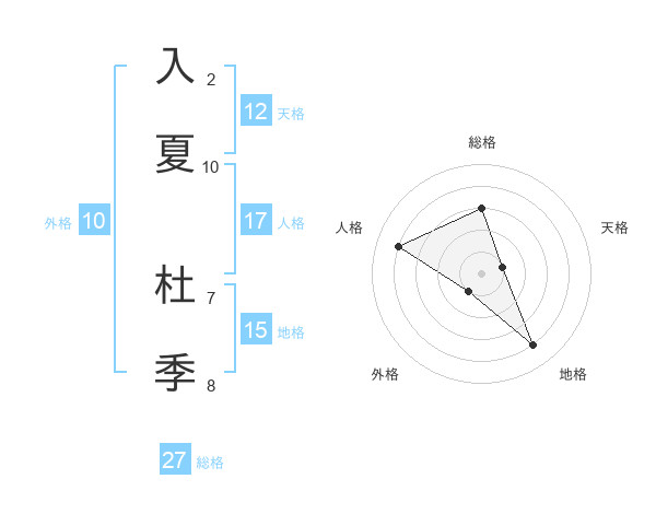 入夏 杜季さんの総格は27画の3点!