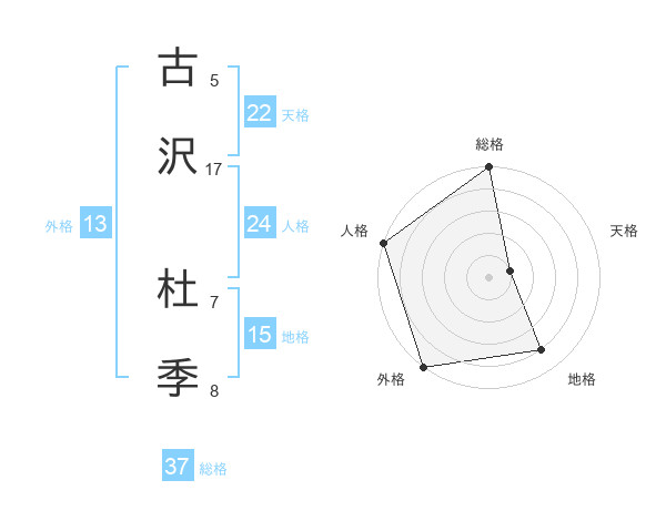 古沢 杜季さんの天格は22画の1点!