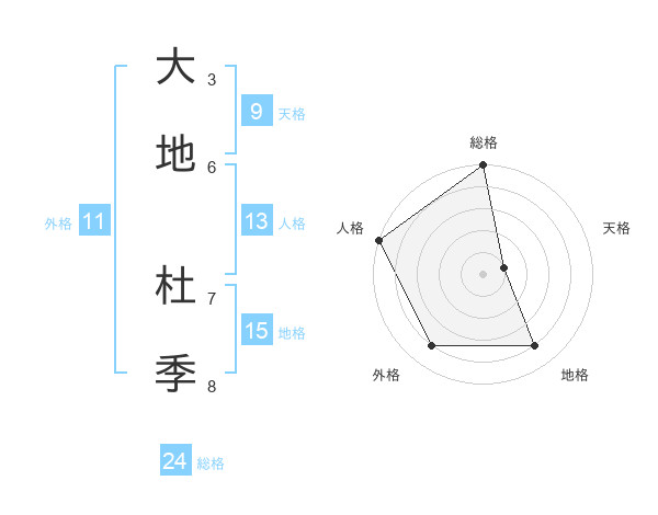 大地 杜季さんの総格は24画の5点!