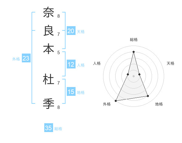 奈良本 杜季さんを姓名の画数から五運を鑑定