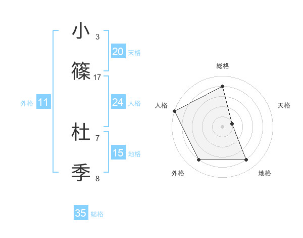 小篠 杜季さんを姓名の画数から五運を鑑定