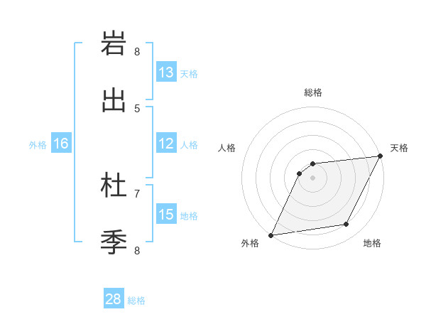 岩出 杜季さんの外格は16画の5点!
