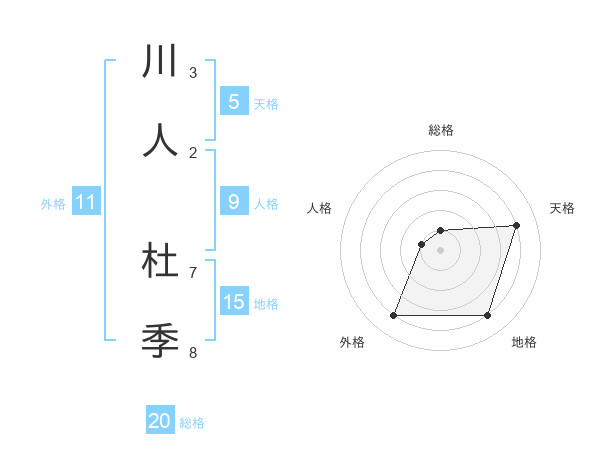 川人 杜季さんの天格は5画の4点!