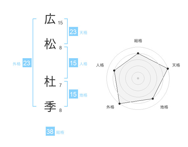 広松 杜季さんの天格は23画の5点!