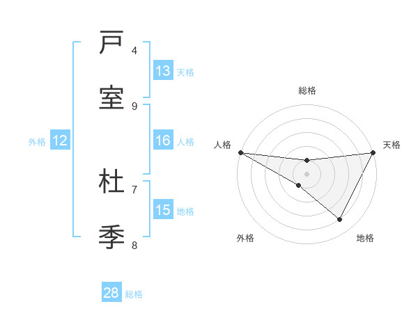 戸室 杜季さんの総格は28画の1点!