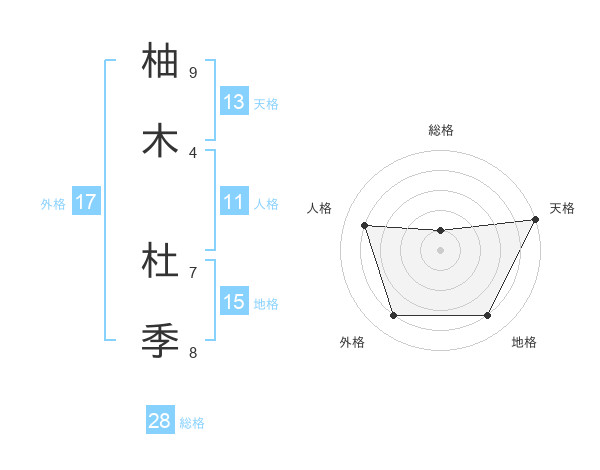 柚木 杜季さんを姓名の画数から五運を鑑定