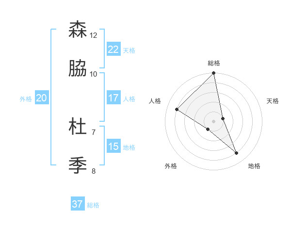 森脇 杜季さんを姓名の画数から五運を鑑定