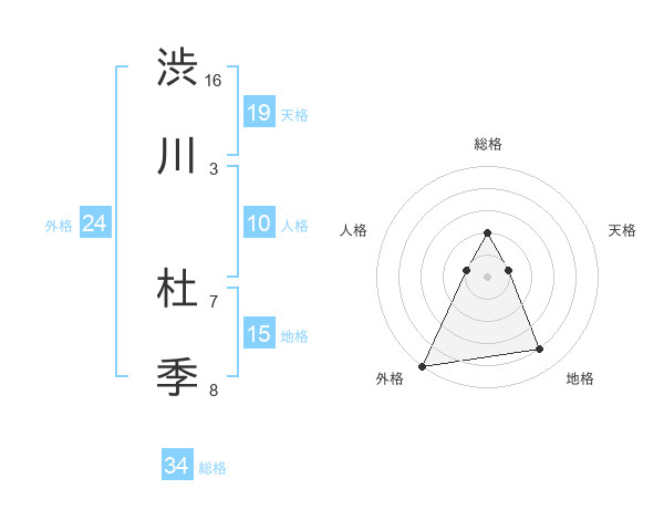 渋川 杜季さんを姓名の画数から五運を鑑定