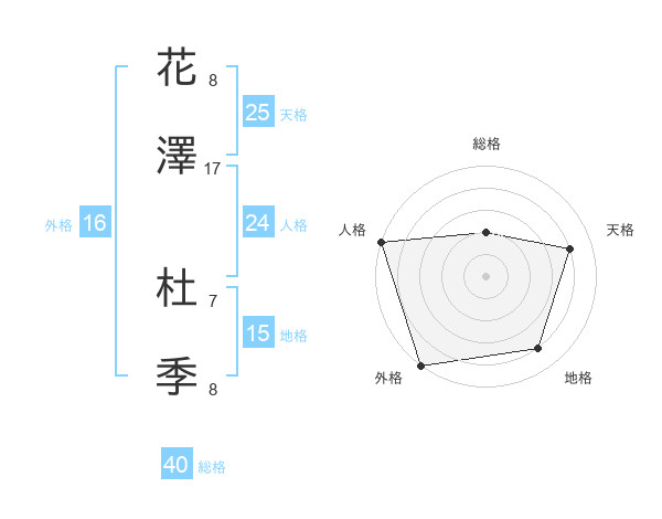 花澤 杜季さんを姓名の画数から五運を鑑定