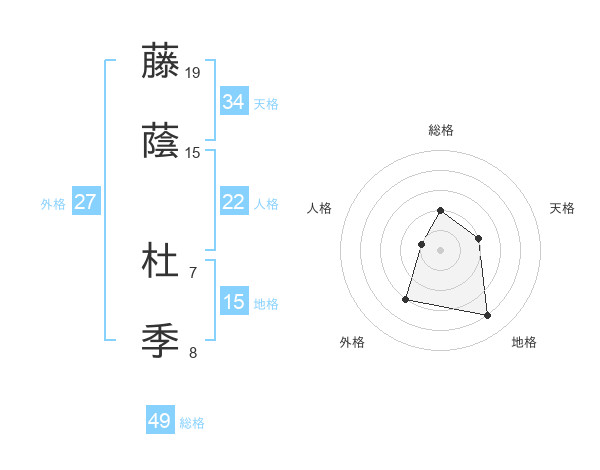 藤蔭 杜季さんの総格は49画の2点!