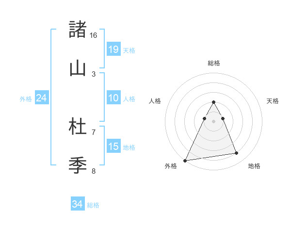 諸山 杜季さんの総格は34画の2点!