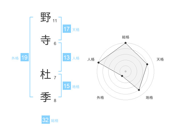 野寺 杜季さんを姓名の画数から五運を鑑定