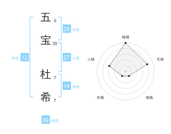 五宝 杜希さんを姓名の画数から五運を鑑定