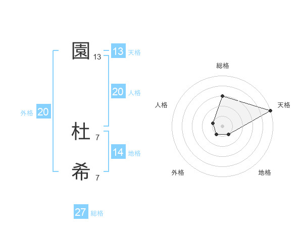 園 杜希さんの天格は13画の5点!