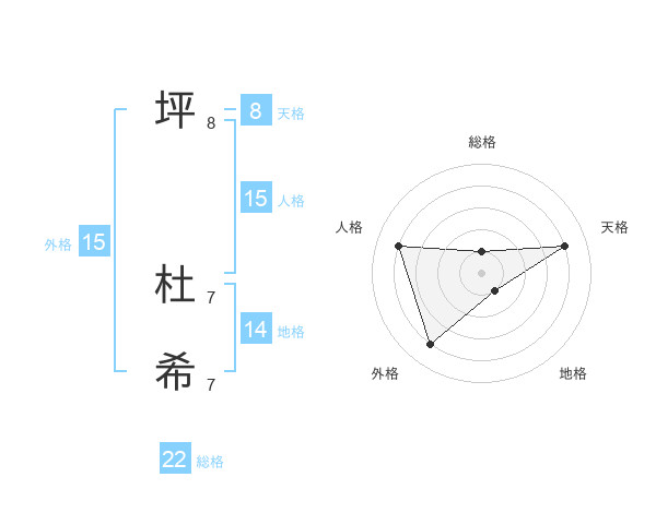 坪 杜希さんの総格は22画の1点!