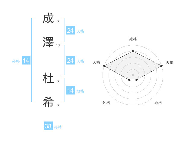 成澤 杜希さんの天格は24画の5点!