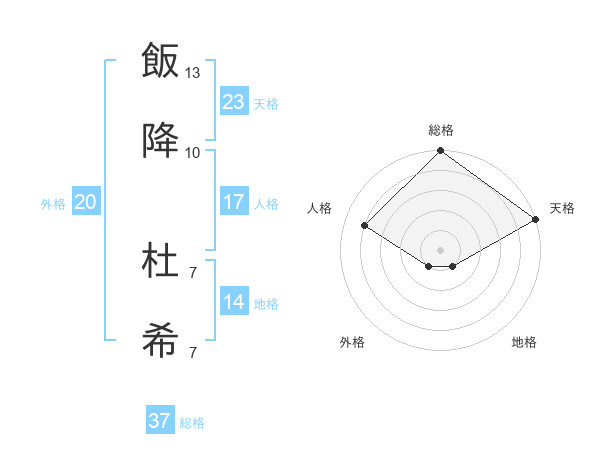 飯降 杜希さんの総格は37画の5点!