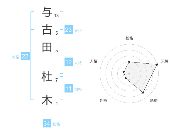 与古田 杜木さんを姓名の画数から五運を鑑定